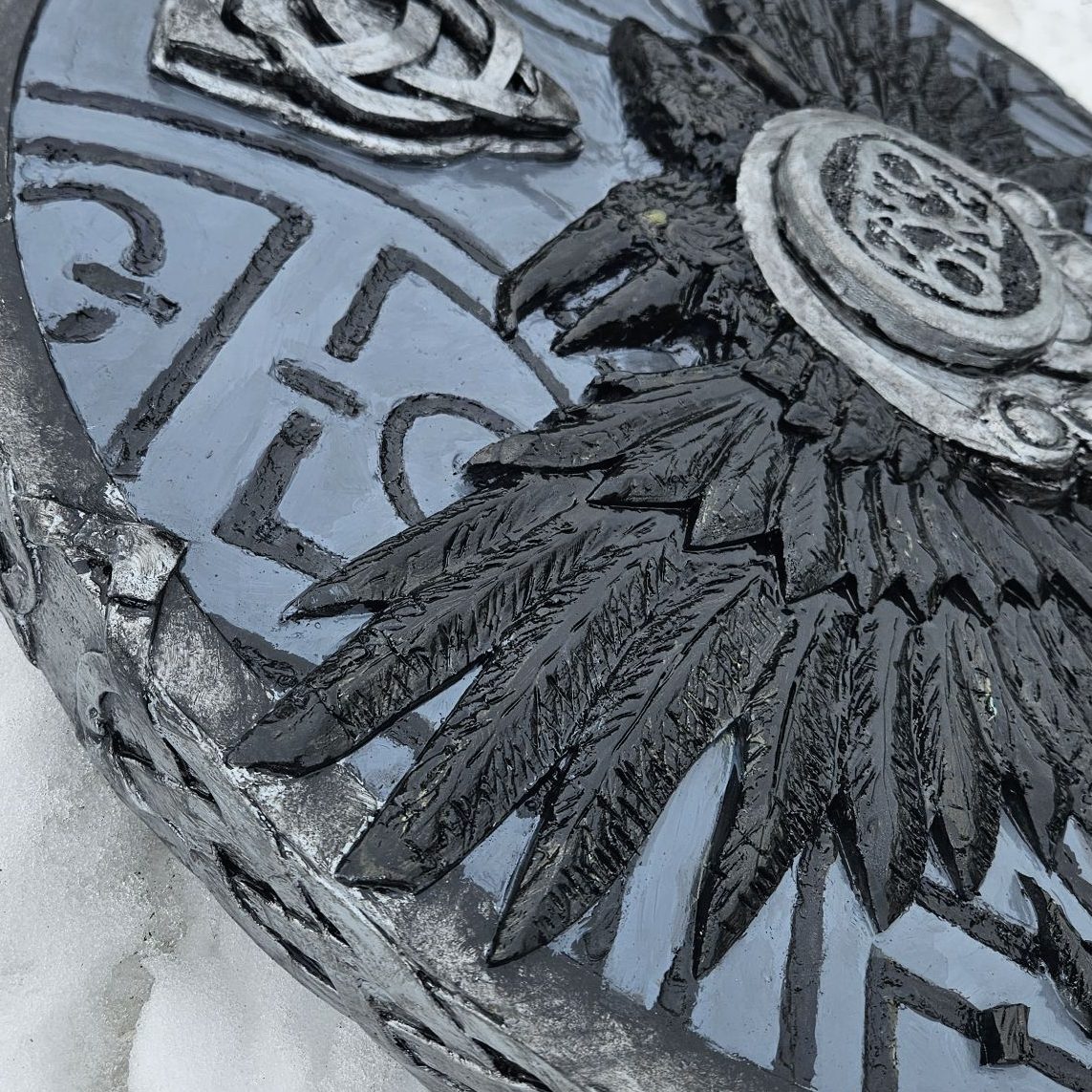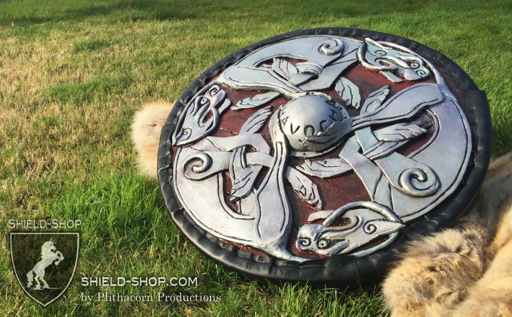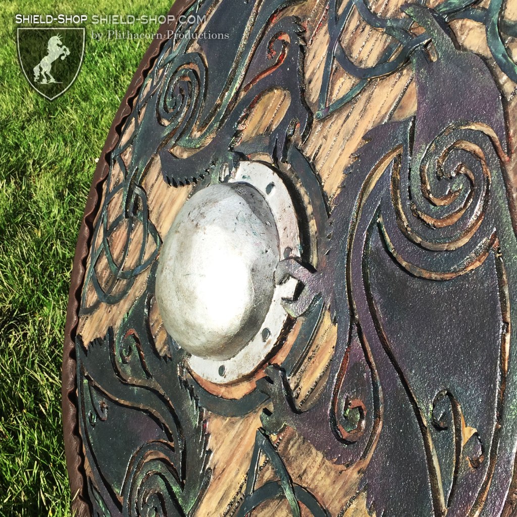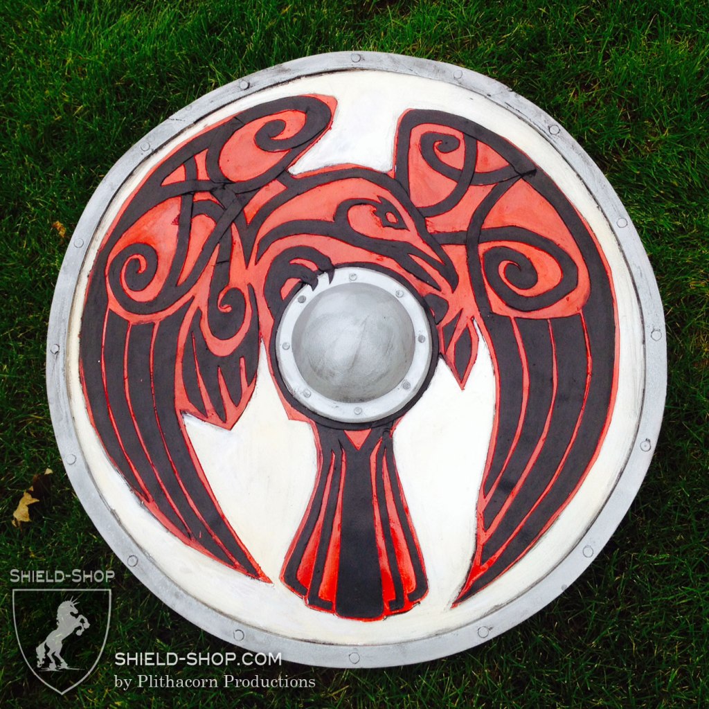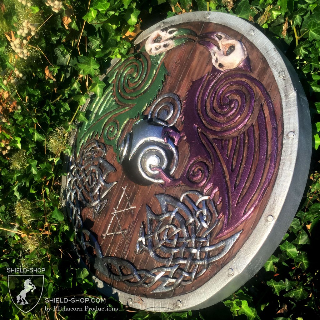 Celtic Raven Shield with stitched Leather Edge